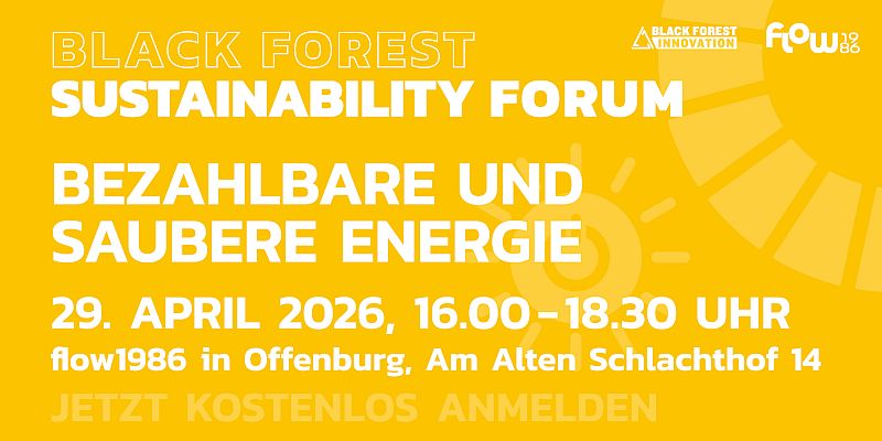 Beim Black Forest Sustainability Forum 2026 dreht sich alles um die Frage, wie wir Energie von der Erzeugung über Gewinnung und Speicherung bis hin zur Anwendung zukunftsfähig gestalten können.