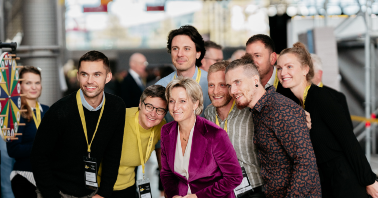 Am Ende hielt auch BW-Wirtschaftsministerin Frau Hoffmeister-Kraut an unserer Fotobox. Mit auf dem Foto alle Partner unseres trinationalen Standes: IHK Südlicher Oberrhein, Basel Area for Business and Innovation, Freiburg Wirtschaft Touristik, SEMIA (Startup Inkubator Elsass) und Messe und Foundersnet Offenburg.