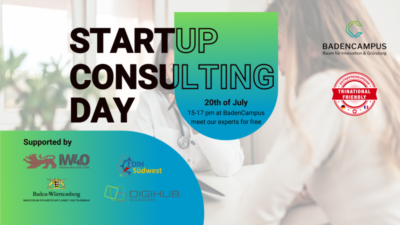 On July 20th, a Startup Consulting Day will take place at BadenCampus, where interested participants will have the opportunity to receive mentoring directly on site from BadenCampus partners. Mentoring/Consulting will then take place from 3-5 p.m., during which startups will be mentored in three sessions of 45 minutes each. You can see which mentors are available in the external link to the event.